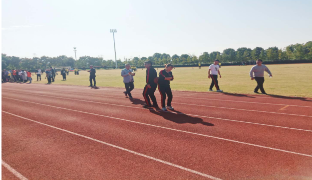 在四人五足的比赛环节中,四名队员齐心协力,保持口令一致、步调一致、节奏一致,稳步前行地完成比赛项目。呼啦圈过山车比赛过程中,在没有准备好的状态下听到比赛哨声匆忙应战,乱了节奏没有发挥出应有的水平,但是队员们并没有气馁,还是全身心投入后面的比赛准备中,在疯狂毛毛虫比赛最终取得了第一名的好成绩。